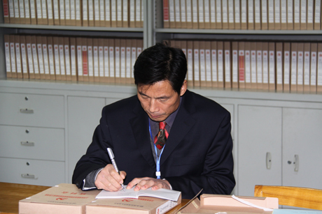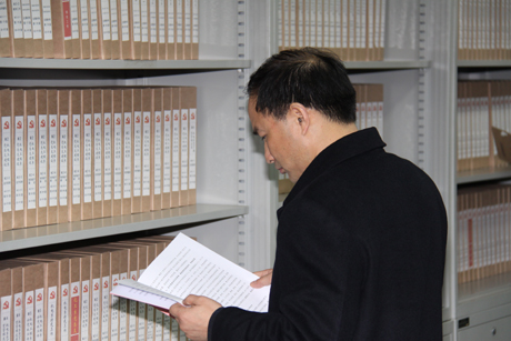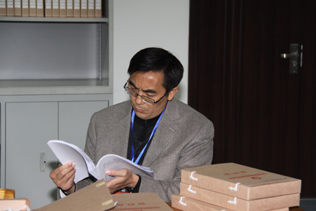 ,省委教育工委基层党组织建设工作考核组专家在图文信息中心五楼专家工作室详细查阅档案资料。