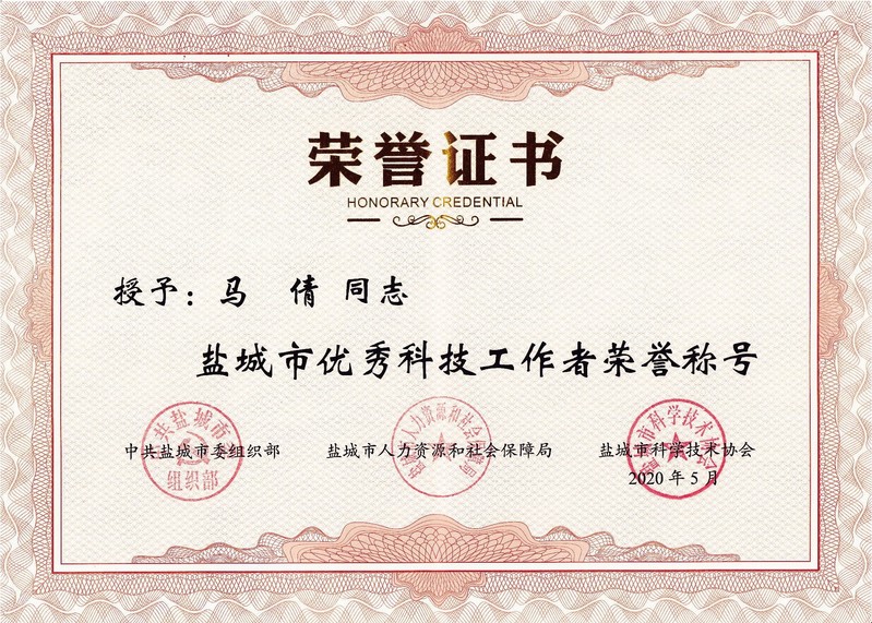 5月28日,盐城市委组织部、人社局、科协联合举办庆祝2020年“全国科技工作者日”主场活动。会上,我校“生态纺织技术科技创新团队”被表彰为“盐城市优秀科技创新团队”,纺织服装学院青年教师马倩被授予“盐城市优秀科技工作者”荣誉称号。